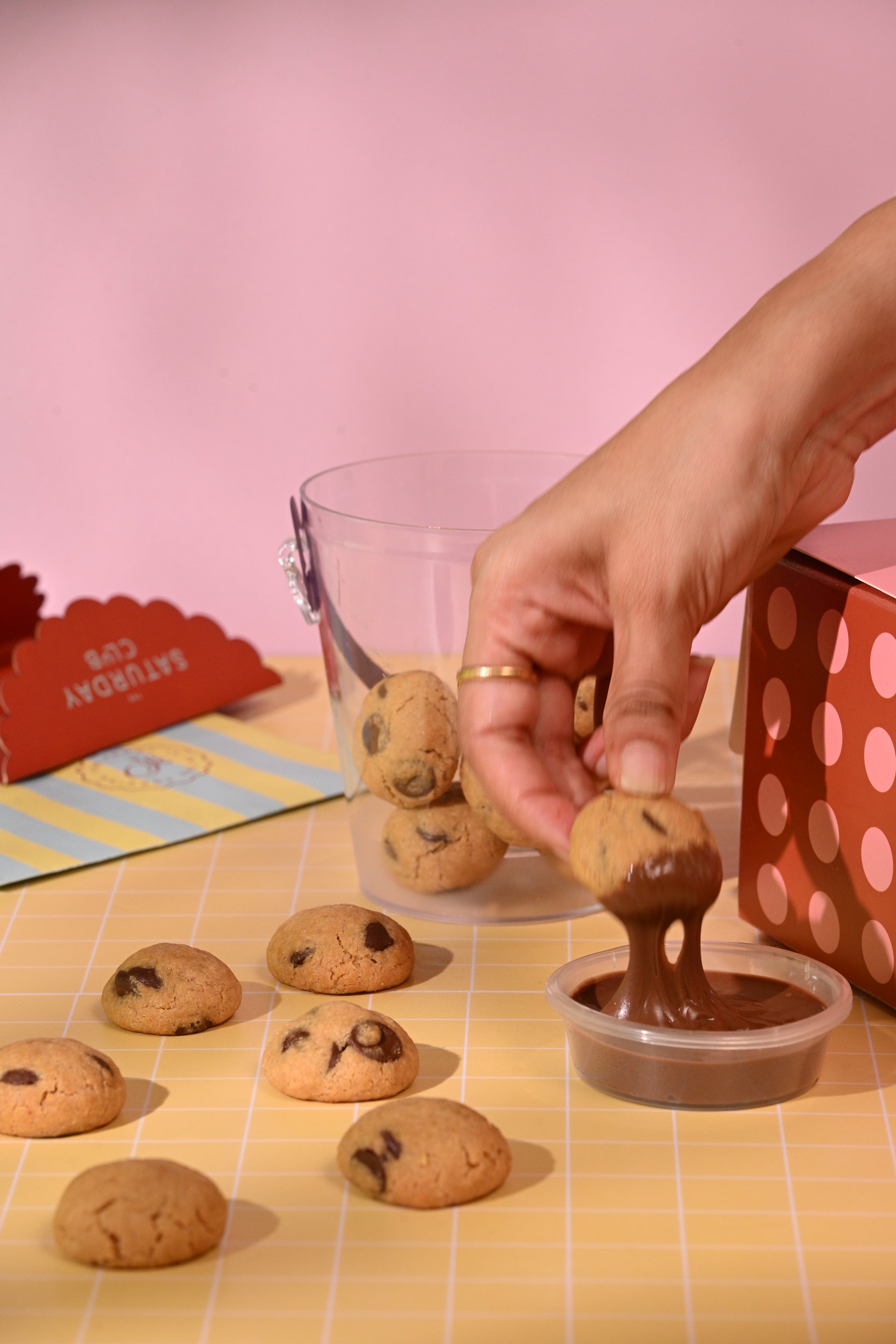 A little tub of happiness for your sibling! Bite-sized soft mini chocolate chip cookies served with a mini pot of rich, silky Nutella for the ultimate dunk-and-devour experience. Perfect for late-night munchies, movie marathons, or just sibling bonding over chocolatey indulgence. Gift them a tub full of sweetness—because Rakhi deserves a little extra love (and Nutella)!